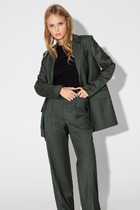 Текстильный классический жакет прямого кроя. Детали: жакет полуприлегающего силуэта, пиджачный воротник, перед с прорезными карманами, двубортная застежка на петли и пуговицы, спинка со средним швом, рукава втачные двухшовные, жакет на подкладке
