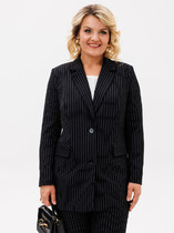 Классический приталенный жакет из текстильной ткани. Детали: жакет с отрезными бочками и нагрудными вытачками, пиджачный воротник, прорезные карманы, двубортная застежка на петли и пуговицы, спинка со средним швом, втачные двухшовные рукава, жакет на подкладке