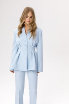 Текстильный приталенный жакет с отлетными деталями по талии.