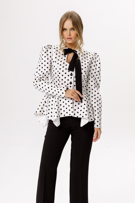 Хлопковый жакет в горохи с вырезом-каплей (приобрести брюки с фото можно по арт. 6557).