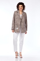 Жакет на подкладке приталенного силуэта с прорезными карманами с клапанами по переду. Воротник-английский. Рукава-двухшовные. Застегивается на две пуговицы. Серебристый кант по борту, клапанам.
