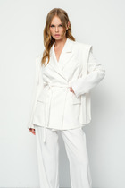 Элегантный жакет из костюмной ткани в клетку — идеальное дополнение как для дневного, так и для вечернего образа. Эта стильная модель выполнена в свободном силуэте с английским воротником, который визуально удлиняет шею, придавая образу утончённость. В комплект входит пояс из основной ткани, что позволяет подчеркнуть талию и добавить изысканности вашему наряду. Подходит для офисных встреч, прогулок и вечерних мероприятий.