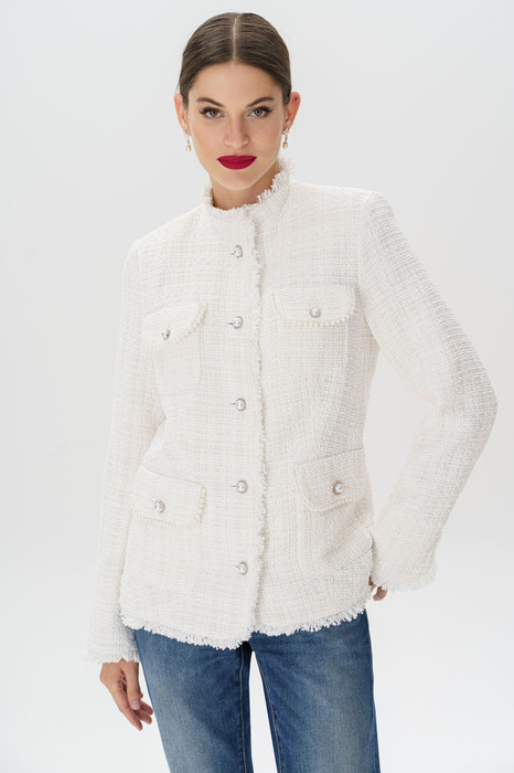 По низу рукавов, борту жакета, низу и стойке идет отделка бахромой. Средняя длина жакета - 60,5 см (±3,0 см), средняя длина рукава - 61,0 см (±3,0 см).