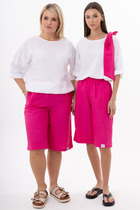 Уникальная ткань полулён, состоящая на 30% из лена и на 70% из хлопка, дарит прекрасную воздухопроницаемость и легкость. Лён придает ощущение естественности и свежести, а хлопок добавляет мягкость и прочность. Эти преимущества делают костюм со штанами идеальным выбором для весеннего и летнего времени года.