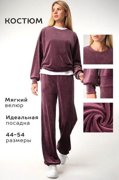 Повседневный велюровый костюм с брюками имеет свободный прямой крой и удобен для дома и прогулок. Бархатный костюм подойдет для путешествий и домашнего уюта. Фиолетовый костюм идеален для осенних и весенних образов.