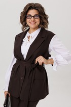 Жилет укороченный, выполнен из стеганной трикотажной ткани серого цвета. Характеристика: жилет А-силуэта, вортник стойка, капюшон цельный с жилетом, центральная застежка на молнию, скрывается под планкой на кнопках, боковые карманы на молнии, по низу изделия резинка с фиксаторами, брендированный подклад, спинка цельнокройная. Длина изделия от края горловины по спинке 58см.