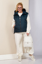 Жилет женский на подкладке из тёплой ткани, с застёжкой спереди на петли и пуговицы, с вертикальными рельефами по перпеду и спинке, с карманами -" обманками" по переду, с хлястиком по спинке.