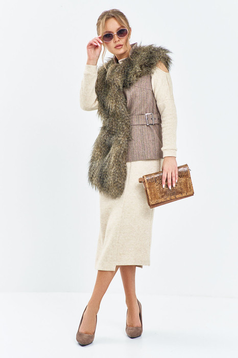 Совместные покупки Сургут Женская одежда Жилеты — Жилет Euro Moda 657 коричневый мех енота
