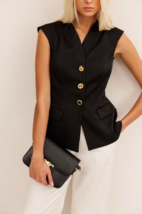 - трендовые золотые пуговицы разных форм на застёжке