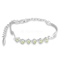 Браслет жёсткий из серебра с натуральным хризолитом родированный