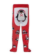 Новогодние колготки "Пингвин" с пушистой нитью и бантиком