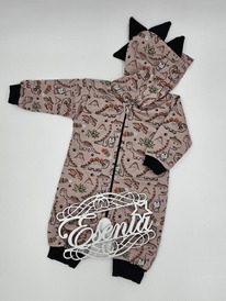 ESENIA Комбинезон детский с тонким начесом Динозаврик Пудрово-Розовый с рисунком