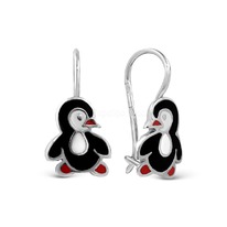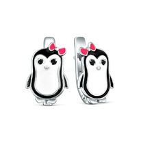 Серьги детские из серебра с эмалью родированные - Пингвины 925 пробы 2110034