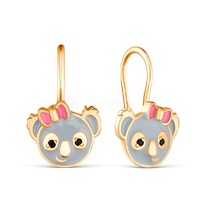 Серьги детские из золочёного серебра с эмалью и фианитами - Коалы