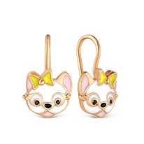 Серьги детские из золочёного серебра с эмалью и фианитами - Собачки