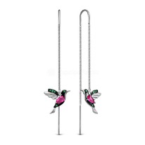 Серьги-продёвки из серебра с пл.кварцем цв.родолит и фианитами родированные 925