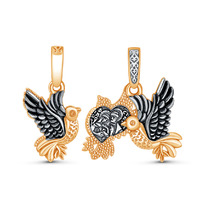 Подвеска религиозная из золочёного серебра с чернением - Святые Пётр и Феврония,