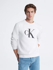 Calvinklein Monogram Logo Fleece Crewneck Sweatshirt Brilliant White