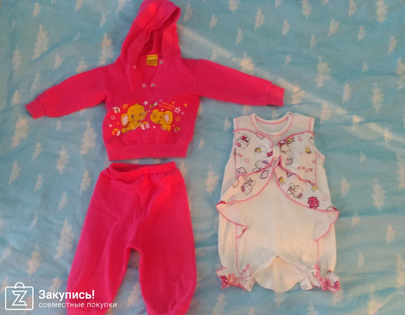 Мне очень нравится эта закупка, я частенько заказываю тут всякие всякости. И вещи нам всегда попадались очень приличного качества, а цены довольно приятные. Единственное - цвета не всегда соответствуют картинке, но, по-моему, это вообще не проблема. И я заказываю одежду всегда на размер больше, лучше пусть полежит немного, чем будет впритык. Потому что, например, сейчас мы носим одежду с этого сайта на рост 74 см (возраст 7-10 мес.), а ребёнку 8 месяцев, и нам явно до 10 месяцев не хватит её))) Так что всем рекомендую, качество хорошее, цены приятные!