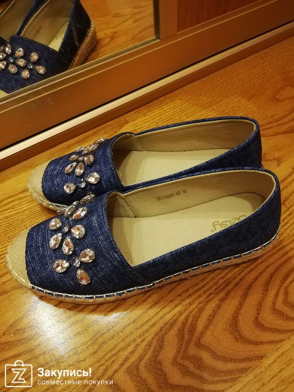 ДД. Ещё один пример того, что выгодно покупать на сайте обувь со скидками. Не помню точно, какая скидка была на эти эспадрильи, но больше 30 % это точно. Цена в СЗ - 853 рубля. Цена в WB со скидкой 40 % - 1686 рублей. Теперь о модели. Размер 35. Но модель на широкую ногу. Не скажу, что для меня это доставляет неудобство. Для меня доставляет неудобство полукруглый носок и ощущение того, что обувь мне мала справа. Вообще, исходя из отзывов на WB такая проблема у этой модели есть (отзывы прочитала после получения). Пока в раздумьях, но скорее всего буду пристраивать.