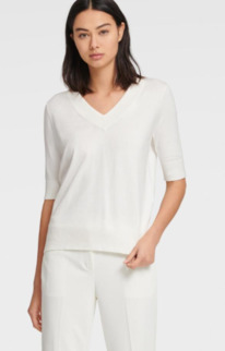 DKNY SHORT SLEEVE V-NECK SWEATER Ivory