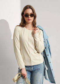 22.03 Vilatte Лонгслив облегающий из фактурного трикотажа в рубчик с круглым вы