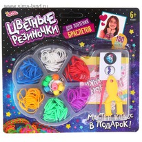 Резиночки для плетения, набор из 4-х цветов с блестками по 100 шт., пяльцы, 2 кр