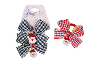 Изготовлен из ленты в клетку с парчовой подкладкой. Украшен фигуркой из металла "Дед мороз". Размер бантика 7 см. Цвет черная клетка.