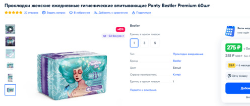 — BESTLER Прокладки ежедневные в индивидуальной упаковке 60шт