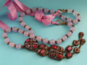 оригинальные винтажные бусы из пурпурного халцедона + крупное кольцо
