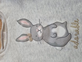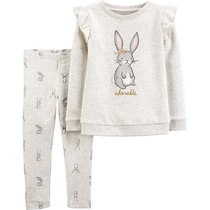Б/У костюм известного, американского бренда Carters, 2-Piece Bunny Fleece Top & Legging Set. Комплект из 2 предметов для девочки: флисового топа и леггинсов. Топ, выполненный из мягкого флиса с милым принтом в виде зайчиков, прекрасно сочетается с подходящими леггинсами, создавая милое сочетание в холодную погоду. Длинные рукава с развевающимися плечами, ребристый вырез. Кролик с трафаретной печатью, блестящей надписью ADORABLE и аппликация бант из тюля. Леггинсы со скрытым эластичным поясом для удобной посадки и сплошным принтом кролика. Подходит для машинной стирки. Цвет: Heather. Состав: верх 80% хлопок, 20% полиэстер; низ 95% хлопок, 5% эластан. Размер: 24M для девочки 24 месяцев, ростом 81-86 см, весом 12,5-13,6 кг. Состояние: б/у, отличное.