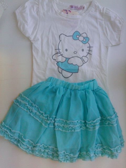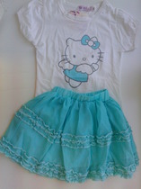 Новый, очень красивый комплект для девочки. Фабричный Китай. Футболочка 100% хлопок, юбочка на подкладе. На этикетке указан размер 110, но немного маломерит.