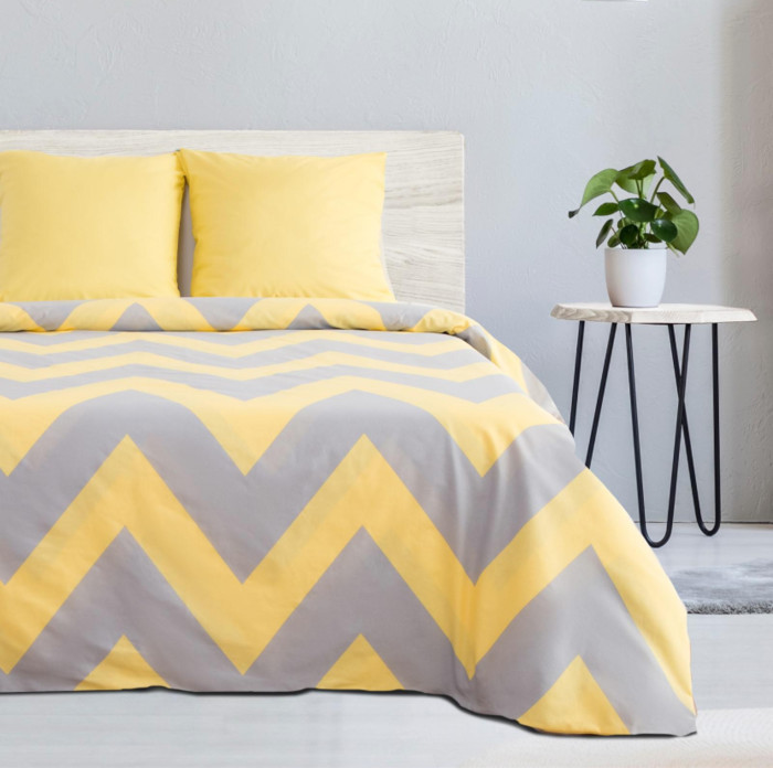 — Комплект постельного белья из поплина Зиг-заг жёлтый/серый