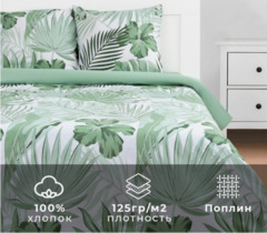 Комплект постельного белья из поплина Тропики зелёный
