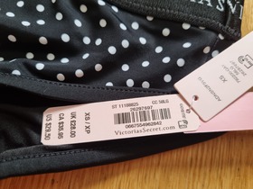Новый, оригинальный купальник бикини известного, американского бренда VICTORIAS SECRET, Sydney Logo Plunge Swim Top & Logo High Waist Cheeky Swim Bottom. Купальный топ с глубоким вырезом и логотипом. Окунитесь в спортивный стиль с этим верхом бикини с глубоким вырезом, который переходит в полосу (ленту) с логотипом. Съемная подкладка пуш-ап. Комфортные плавки с высокой талией в спортивном стиле. Благодаря классическому поясу (ленты) с логотипом достигается минимальное покрытие спины. Цвет: 58LG Black White Dot. Состав верха: основная часть: 80% полиамид, 20% эластан; подкладка: 92% полиэстер, 8% эластан. Состав низа: основная часть: 80% полиамид, 20% эластан; подкладка: 92% полиэстер, 8 % эластан. Размеры: верх XS, сша 32AA 32A 32B, наш 70АА 70А 70В, низ XS.