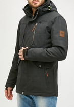 Горнолыжная мужская куртка имеет съемный капюшон на молнии и два фиксатора по бокам. Верх капюшона с фиксатором, регулирующим глубину. Два нагрудных кармана, правый прикрыт ветрозащитной планкой. Два накладных кармана с потайным прорезным на молнии. Манжеты рукавов на регулируемых липучках с эластичными вставками с прорезью для пальца. Ушки капюшона фиксируются липучками и кнопкой и закрыты планкой. На воротнике курки шита ткань для защиты от натирания шеи и подбородка. На груди с правой стороны, на левом рукаве (в районе предплечья) фирменный логотип MTFORCE. Внутренняя часть куртки от плеча до пояса имеет систему omni-heat с фирменным логотипом компании, также подкладка спины выполнена из дышащего материала для улучшения циркуляции воздуха. Внутри имеется два накладных кармана из сетки. С внутренней стороны изделия имеется держатель для наушников, а также, дополнительный боковой карман (слева) на молнии. На ярлыке с правой стороны, присутствует голограмма с фирменным логотипом. Внутри рукавов материал подклад 100% полиэстер. Двойная молния имеет ветрозащитную планку на липучках и кнопках. Есть крючок-держатель.