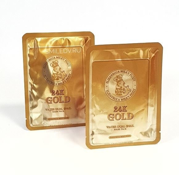 Маска для лица с золотом и муцином улитки Elizavecca 24k Gold Water Dual Snail Mask Pack - одноразовая тканевая маска для омоложения кожи лица от Elizavecca.