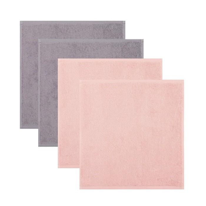 — Набор из 4х махровых полотенец 30*30 Серые/Розовые