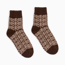 — Носки шерстяные женские Снежинки жаккард коричневый 23-25