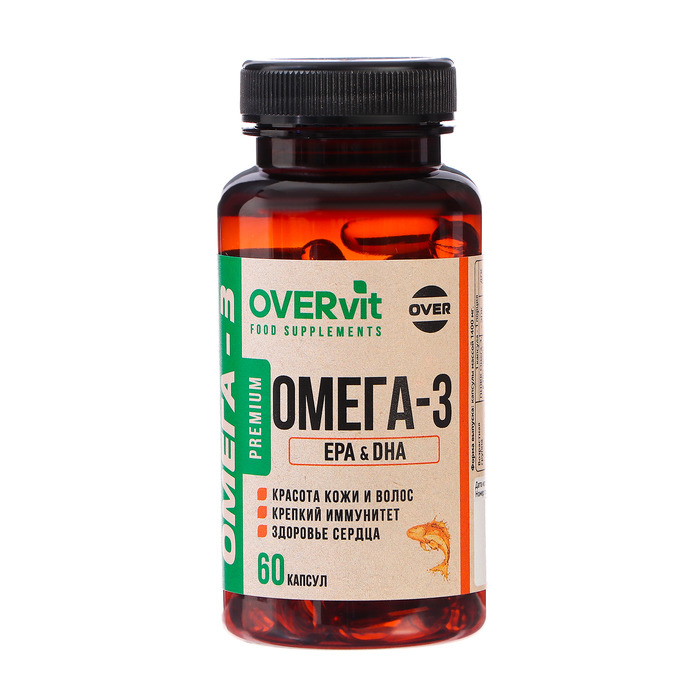 «Омега-3 35% OVER» (или OVERvit) — это БАД, содержащая полиненасыщенные жирные кислоты (ПНЖК) высокой степени очистки из рыбьих жиров северных пород.