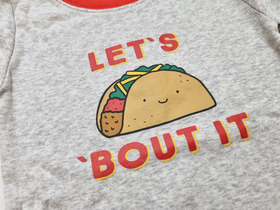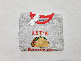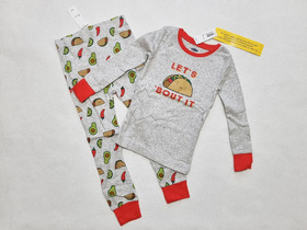 Новая пижама с длинным рукавом известного американского бренда Old Navy, "Let's Taco 'Bout It" Sleep — это дочерняя ветка известного среди почитателей качественной одежды и аксессуаров в доступном ценовом сегменте бренда GAP. Комплект сна включает в себя футболку для сна с длинными рукавами и леггинсы для сна. Футболка Sleep с контрастной горловиной, длинными рукавами с контрастными манжетами и изображением Let's Taco Bout It спереди. Леггинсы для сна имеют эластичную талию, контрастные манжеты и рисунок по всей поверхности (с тако, авокадо, красным перцем и лаймом). Мягкий хлопчатобумажный трикотаж. Термо-ярлык внутри шеи и спинки без меток для дополнительного комфорта. Цвет: Taco. Состав: 100% хлопок. Размер: 4T для мальчика 4 лет, ростом 99-107 см.