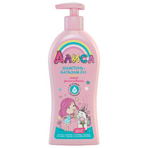 Мягкий шампунь-бальзам «Алиса» бережно очищает волосы и кожу головы, а так же облегчает процедуру ежедневного расчесывания, делая ее простой и безболезненной. Специальная формула имеет мягкую моющую основу, нейтральный уровень рН и не вызывает слез, поэтому подходит даже для самых нежных принцесс. Экстракт клубники, протеины пшеницы, пантенол, овсяное и кокосовое молочко в сочетании с кондиционирующими добавками питают кожу головы, разглаживают волосы, придавая им мягкость и естественный блеск. Теперь можно не бояться экспериментировать и создавать самые разнообразные прически! Шампунь-бальзам 2 в 1 рекомендован для детей с 2-х лет.