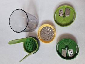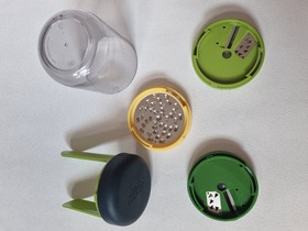 Б/у терка спиралайзер популярного британского бренда Joseph & Joseph, Spiro Three-in-One Spiralizer. Спиральная терка открывает новые возможности для тех, кто любит готовить. В комплект входит крупное и среднее лезвие, насадка для сыра и небольшой контейнер для сбора натертых овощей или фруктов. Легкая в использовании конструкция делает длинные ровные полосы при закручивании. Полученная овощная "лапша" подходит для украшения праздничных блюд или для приготовления различных салатов. Приятная на ощупь рукоятка не выскальзывает во время эксплуатации. Все элементы соединяются в одном контейнере и занимают минимум места в ящике стола. Материал: АВS, полипропилен, SAN, нержавеющая сталь, термопластичная резина. Размер: 16x7,5x7,5 см. Вес: 0.26 кг. Состояние: б/у, отличное, использовалась один раз.