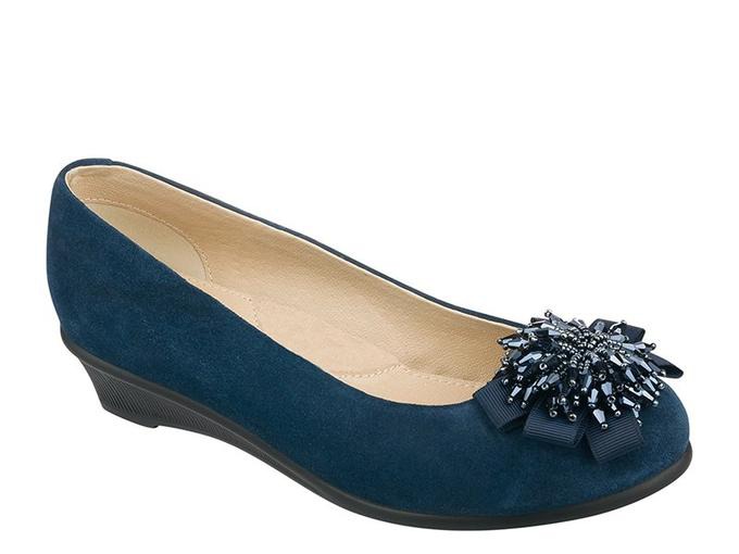 Туфли новые ТМ Антилопа из мягкого натурального материала велюр на небольшой устойчивой танкетке. Мыс декорирован бантом с бусинами. Внутри анатомическая кожаная стелька с супинатором.
