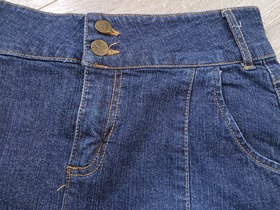 Джинсовая юбка синего цвета из качественного денима. Размер 42 (S), но лучше ориентироваться на замеры. Длина изделия — 46 см, полуобхват бедер — 44 см. Юбка украшена вышивкой на заднем кармане. Подходит для создания повседневного образа.