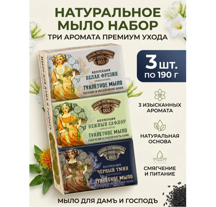 Заказать Завод Братьев Крестовниковых Набор мыла туалетного Фрезия Сафлор Тмин