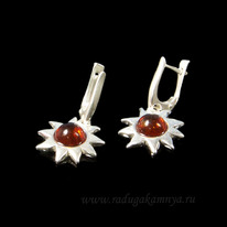 Серьги посеребрённые с янтарём "солнце" 17*19мм коньячный